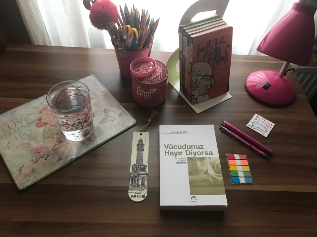 Yürüyüş meditasyonun ardından vardığım nokta… İstinye Park, Penguen kitapevi ve mis kokusuyla raflardan göz kırpan kitaplar. Kadim dostları selamlayarak, uzun zamandır okuma listemde olan kitaplardan biri olan Gabor Mate’nin “Vücudunuz Hayır Diyorsa” adlı eseriyle diğer terapistlerin kitapları. “Vücudunuz Hayır Diyorsa“, stresin, özellikle de çocukluk yıllarımızdan gelen ve özbenliğimizin bir parçası zannedilebilecek kadar derin ve ustaca yerleştirilmiş şartlanmalar sonucunda bilinçsizce yarattığımız gizli streslerin sağlığımız üzerindeki etkilerini çarpıcı bir şekilde gözler önüne seriyor.